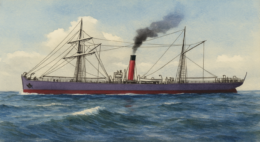 Wrecked between Kleinemonde & Great Fish Point on 26th April 1887 while on a voyage from Cape Town to Mauritius, with a full general cargo including machinery for the goldfields and a box containing 2,000 sovereigns to pay the Army.