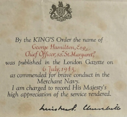 The Chief Officer (George Hamilton) was also taken on board for questioning and released after a short time. The ships Master was eventually interned at Milag Nord for the duration of the war.