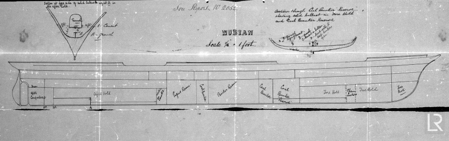 NUBIAN was built in 1876 by C. Mitchell & Co. with a tonnage of 3091grt, a length of 359ft, a beam of 38ft 7in and a service speed of 12 knots.