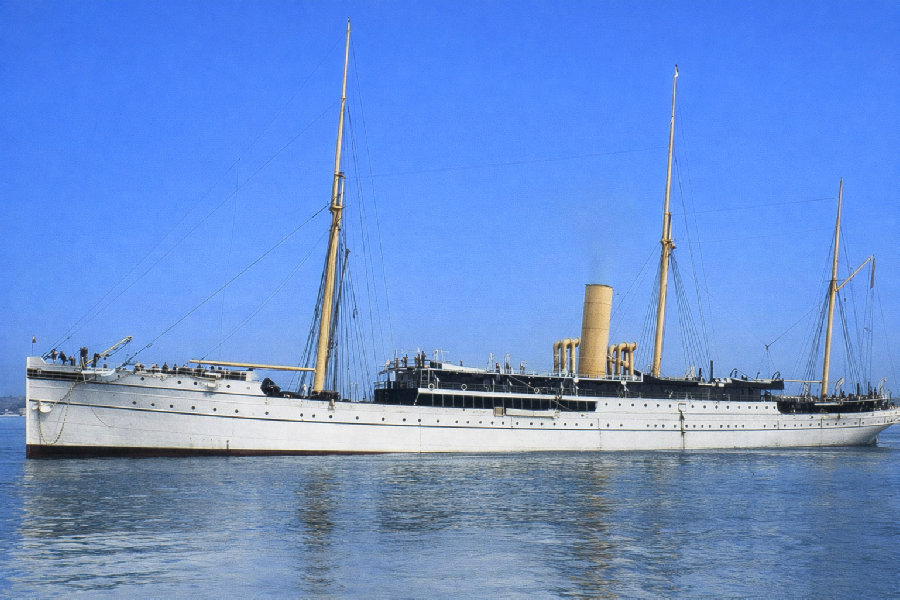 A triple expansion engine was finally installed in 1889 and, at the same time, the funnel was heightened by 10ft and a small promenade deck added at the base of the mizzen mast.