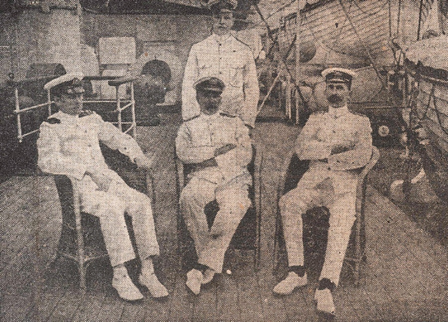 The U-boat then left the Captain's boat, but after moving about for a little time, returned and again hailed it. Although its occupants pointed out that they had already been examined, the captain's boat was again obliged to come alongside the U-boat. The witnesses Chapman and Barton, the second and fourth officers of the "Llandovery Castle" were taken on board the U-boat and were subjected to a thorough and close examination. The special charge brought against them was that there must have been munitions on board the ship, as the explosion when the ship went down had been a particularly violent one. They disputed this and pointed out that the violent noise caused by the explosion of the boilers. They were again released. The U-boat went away and disappeared from sight for a time.