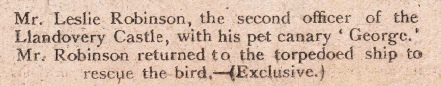 I am not entirely sure about the validity of this story as Mr Robinson’s name does not appear in any account of the incident.