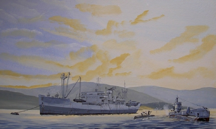 After completing work-up trials, Bonaventure sailed to Loch Striven on the west bank of the Clyde to become the main training base and depot ship for the X craft midget submarines. During August and September 1943, training and trials were carried out for the midget submarines X5, X6, X7, X8, X9 and X10. They were to be used to carry out the attack on the German battleship Tirpitz in Altenfjord, Norway, codenamed Operation Source.