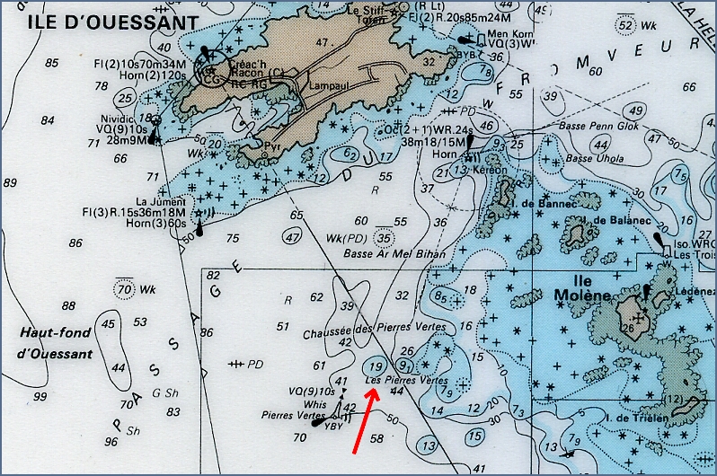 By Mr. BAILHACHE: Soundings would have given indications of danger at a distance of four miles and a half from Ushant. At that distance there was a depth of 100 metres, and there would have been ample time to change the course of the vessel. If her course had been changed to the north-west she would have been perfectly safe. When seen by the Werfa the Drummond Castle was already out of her course. If from that point she continued on a north-easterly course, she must have been lost on the rocks of the Fromveur.
