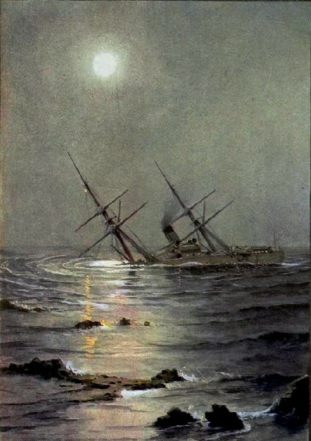 Captain CHARLES JOSLIN, master of the General Steam Navigation Company’s Hirondelle, then running between Southampton and Bordeaux, gave evidence that a strong south-west wind with rain came on shortly after 12 on the morning of the 17th. About 25 miles from the Four Lighthouse he saw a lifebuoy floating. From Belle Isle to Ushant there was a dangerous inset, independent altogether of the tides, which had to be guarded against. In the narrow channels the tide ran at the rate of five knots. In the Passage du Fromveur vessels felt the set of the tides both in flood and ebb. The draught of the Hirondelle was about 16 ft.