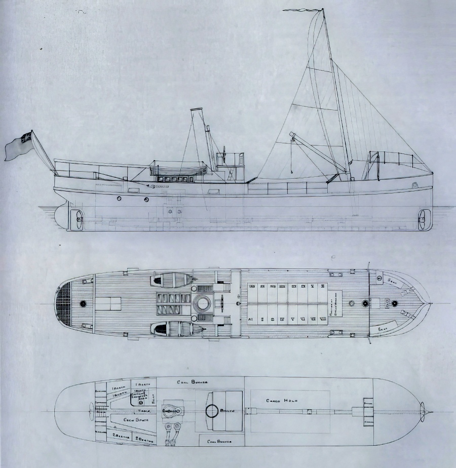 Built for service as a coaster for the smaller river ports of South Africa. She completed her delivery voyage rigged as a schooner with coal being carried in wooden bunkers.