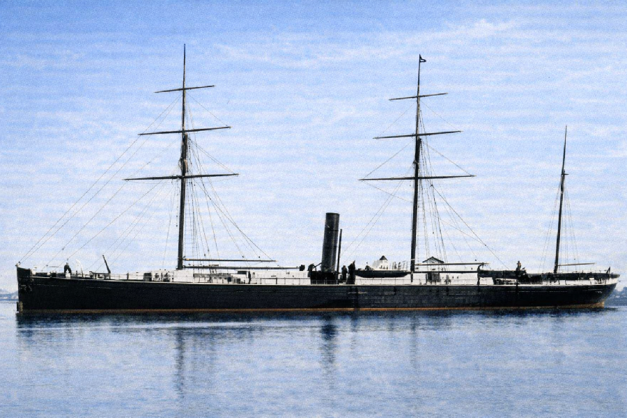 ”The "European" was an iron screw steamer of 2,271 tons gross and 1,460 tons net register, and was fitted with two engines of 350 horse-power.