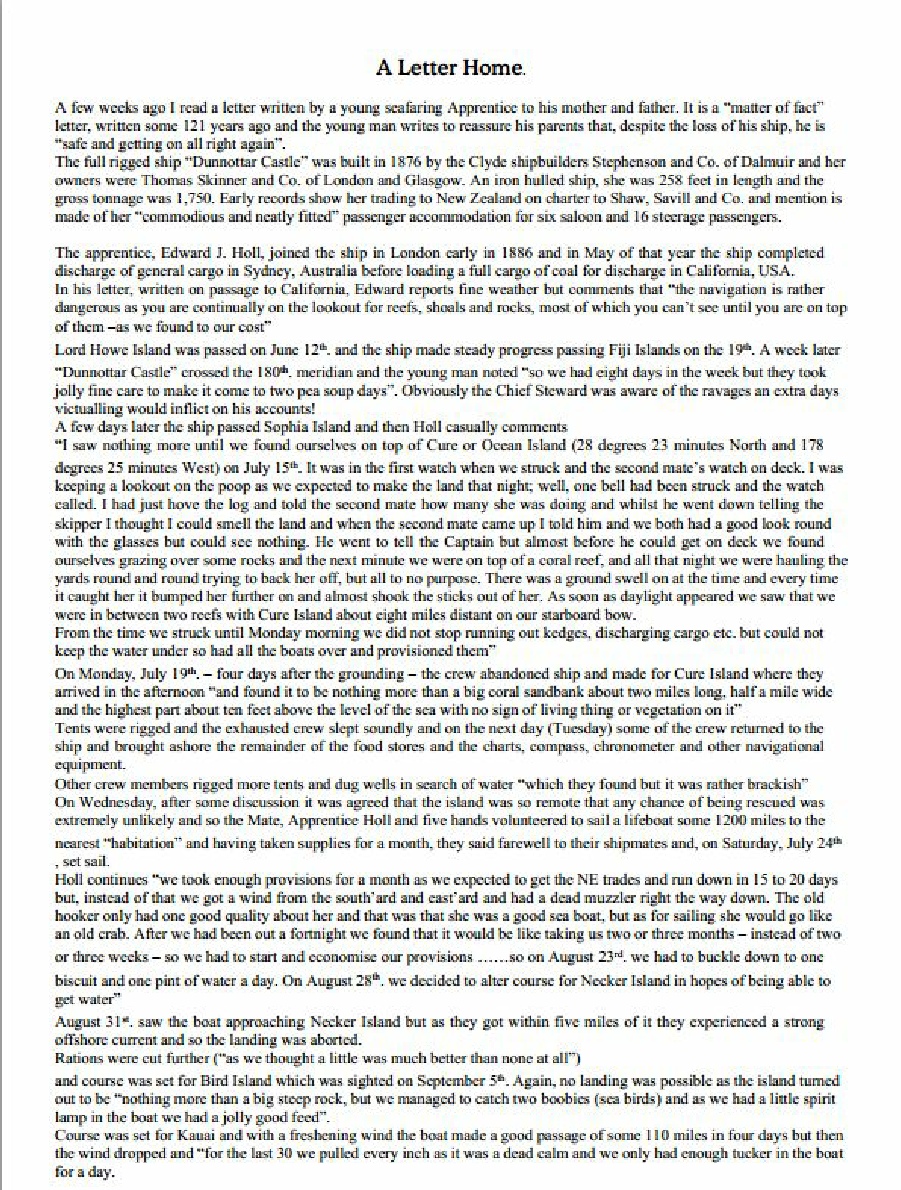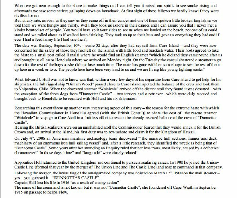 "Nothing was seen of Captain Holl after the disaster. He had been last heard giving the order, "Every man for himself," (this after seeing all boats away with all 2,900 troops OGK) from the sinking ship.