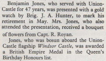 Last routine round trip- South African Mails, RMMV Capetown Castle Ship No. 166402.