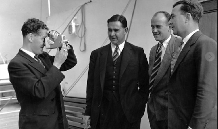 Trevor Bailey filming Colin Cowdrey, Frank Tyson and Dennis Compton on Edinburgh Castle in Southampton