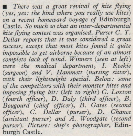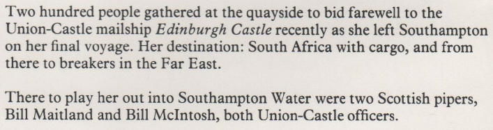Edinburgh Castle was a great favourite of ours, although I never sailed on her, I was always aware of her reputation as a very happy ship.