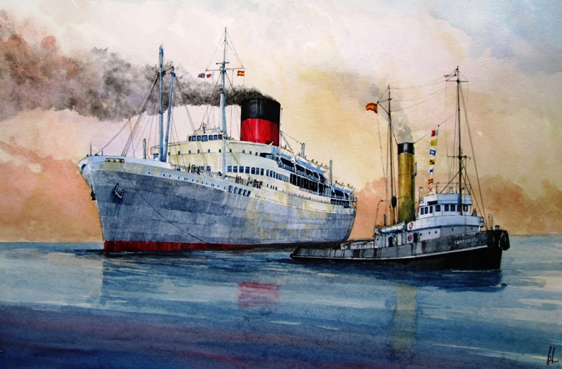 Edinburgh Castle with tug Fortunate at Las Palmas