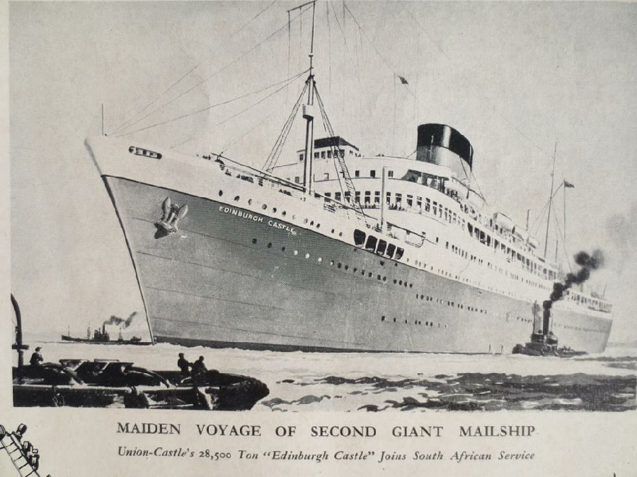 This drawing appeared on the front page of The SA Shipping News in 1948, heralding the first arrival of Edinburgh Castle