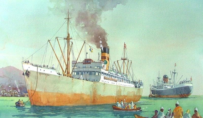 A bit of artistic licence here as Umtata was sunk in 1942 and the first Clan liners of the style shown did not come into service until the 1950s