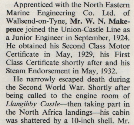 Pretoria Castle Chief Engineer |