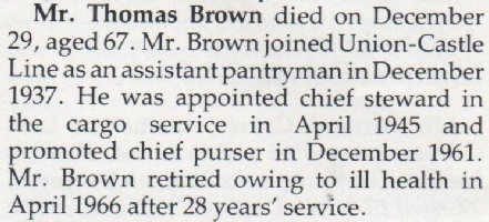 Capetown Castle Chief Steward |