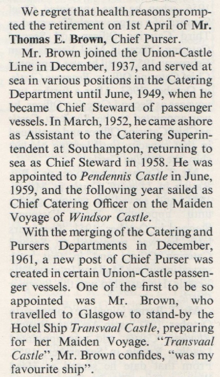 Transvaal Castle Chief Purser |