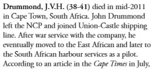 When I decided to set up this web site I asked John to write down his Union-Castle CV, his first, and fully expected response was “Oh Owen, it was all so long ago!”